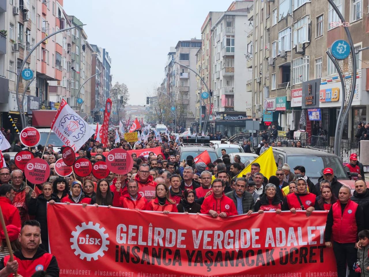 Türkiye Devrimci İşçi Sendikaları Konfederasyonu (DİSK) “Gelirde, vergide adalet, insanca yaşanılacak ücret” talebiyle İstanbul Kartal’dan Ankara’ya doğru yola çıktı.