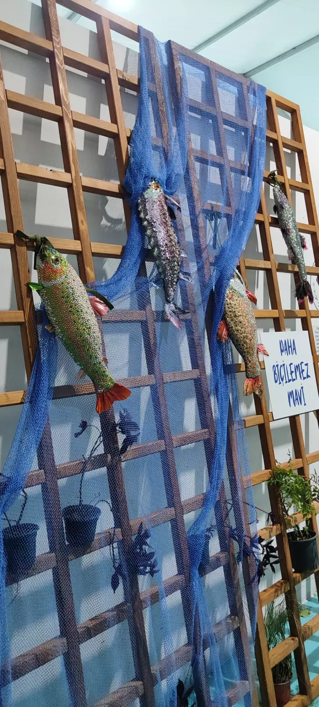 Bu kapsamda hazırlanan geri dönüşüm sanat çalışmasında; Mersin balığı, Türk somonu, hamsi ve benekli alabalık figürleri geri dönüşüm materyaller kullanılarak tasarlandı.